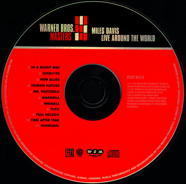 ℗&©1996 Warner Bros. Records Inc. for the U.S. and WEA International for the world outside of the U.S. The copyright in the sound recording and artwork is owned by Warner Music UK Ltd. Made in Germany by Warner Music Manufacturing Europe, a Warner Music Group company. Remastered from the original analogue tapes. Mastering and digital editing at Masterdisk, NYC. Analog transfers and additional editing at The Power Station, NYC. Track 1, 2 recorded in New York, NY, Indigo Blues Club, Saturday, December 17, 1988, 2nd show Track 3 recorded in Los Angeles, CA, Greek Theatre, Sunday, August 14, 1988 Track 4 recorded in Graz, Austria, Liebenauer Eishalle, Tuesday, November 1, 1988 Track 5 recorded in Montpellier, France, Le Zenith - Domaine de Grammond, Wednesday, April 12, 1989 Track 6 recorded in Rome, Italy, Pallazo della Civita "The Steps", Wedenesday, July 26, 1989 Track 7, 8 recorded in Montreux, Switzerland, Casino de Montreux, Montreux International Festival, Friday, July 20, 1990 Track 9 recorded in Osaka, Japan, Osaka Expo Park, Live under the Sky Festival, Sunday, August 7, 1988 Track 10 recorded in Chicago, Illinois, Chicago Theatre - JVC Jazz Festival, Monday, June 5, 1989 Track 11 from Miles Davis' last performance