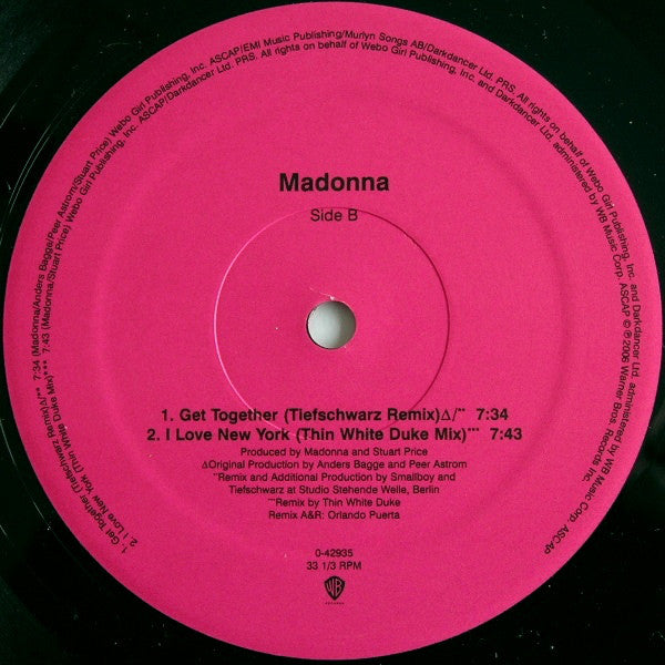 Taken from the album "Confessions On A Dance Floor". Spine has the title as "Get Together" / "I Love New York". Matte cover. Generic die-cut inner sleeves with rounded corners.