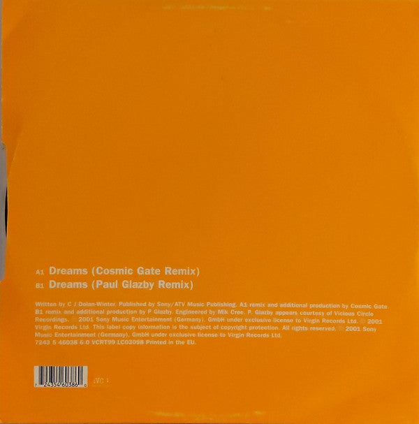 ℗ 2001 Sony Music Entertainment (Germany), GmbH under exclusive license to Virgin Records Ltd. © 2001 Virgin Records Ltd. © 2001 Sony Music Entertainment (Germany), GmbH under exclusive license to Virgin Records Ltd. Printed in the EU. The runouts of the vinyl are etched as 'VART' instead of 'VCRT' and also 'DJ'.
