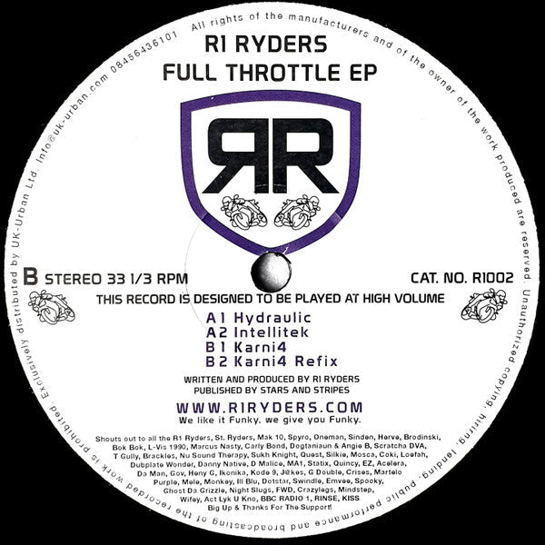 THIS RECORD IS DESIGNED TO BE PLAYED AT HIGH VOLUME WE like it Funky, we give you Funky. Shouts out to all the R1 RYDERS, St. Ryders, Mak 10, Spyro, Oneman, Sinden, Herve, Brodinski, Bok Bok, L-Vis 1990, Marcus Nasty, Carly Bond, Dogtaniaun & Angie B, Scratcha DVA, T Gully, Brackles, Nu Sound Therapy, Sukh Knight, Quest, Silkie, Mosca, Coki, Loefah, Dubplate Wonder, Danny Native, D Malice, MA1, Statix, Quincy, EZ, Acelera, Da Man, Gov, Heny G, Ikonika, Kode 9, J@kes, G Double, Crises, Martelo, Purple, Mele, Monkey, Ill Blu, Dotstar, Swindle, Emvee, Spooky, Ghost Da Grizzle, Night Slugs, FWD, Crazylegs, Mindstep, Wifey, Act Lyk U Kno, BBC RADIO 1, RINSE, KISS Big Up & Thanks For The Support!