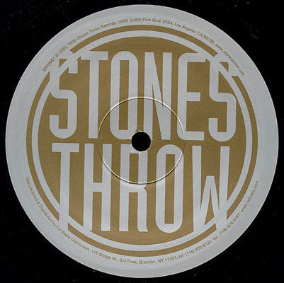 This reissue has the "Fat Beats" website address on the b-side label. instead onf the "Stones Throw" address