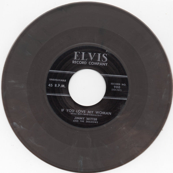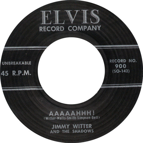 James Avery Witter Sr. Born in Charlotte, NC. In the early 50s he became a local radio jock with a finger on the pulse of this new thing called ROCK & ROLL. Becoming increasingly popular Jimmy knew how to market his craft. Radio Stations on both coasts wanted him as did several record companies. United Artists, Elvis 900, lolita, Neptune to name a few. He went into performing in 1955 and recorded this primitive nugget in 1956. Super rare rockabilly 45 from the late 50's by Jimmy Witter & The Shadows on Elvis Records. Not surprisingly, Col Tom Parker (Elvis's manager) shut this unauthorized operation down quick so only a few of these 45's survived thus making it one of the holy grails of rockabilly collecting. Very limited repro on sassy grey mish mash vinyl !