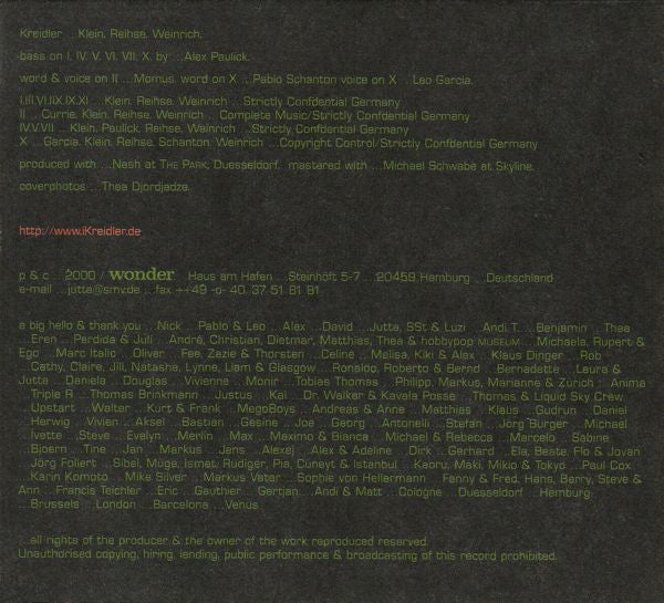 ℗ & © 2000 Wonder. Produced at The Park, Düsseldorf. Mastered at Skyline. Released in Digipak.